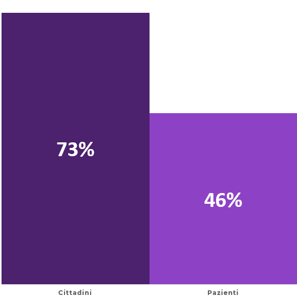 Tra i cittadini che cercano informazioni su Internet, il 73% dichiara di prendere decisione relative alla propria salute basandosi sulle informazioni trovate online. La percentuale è molto più bassa tra i pazienti (46%)
